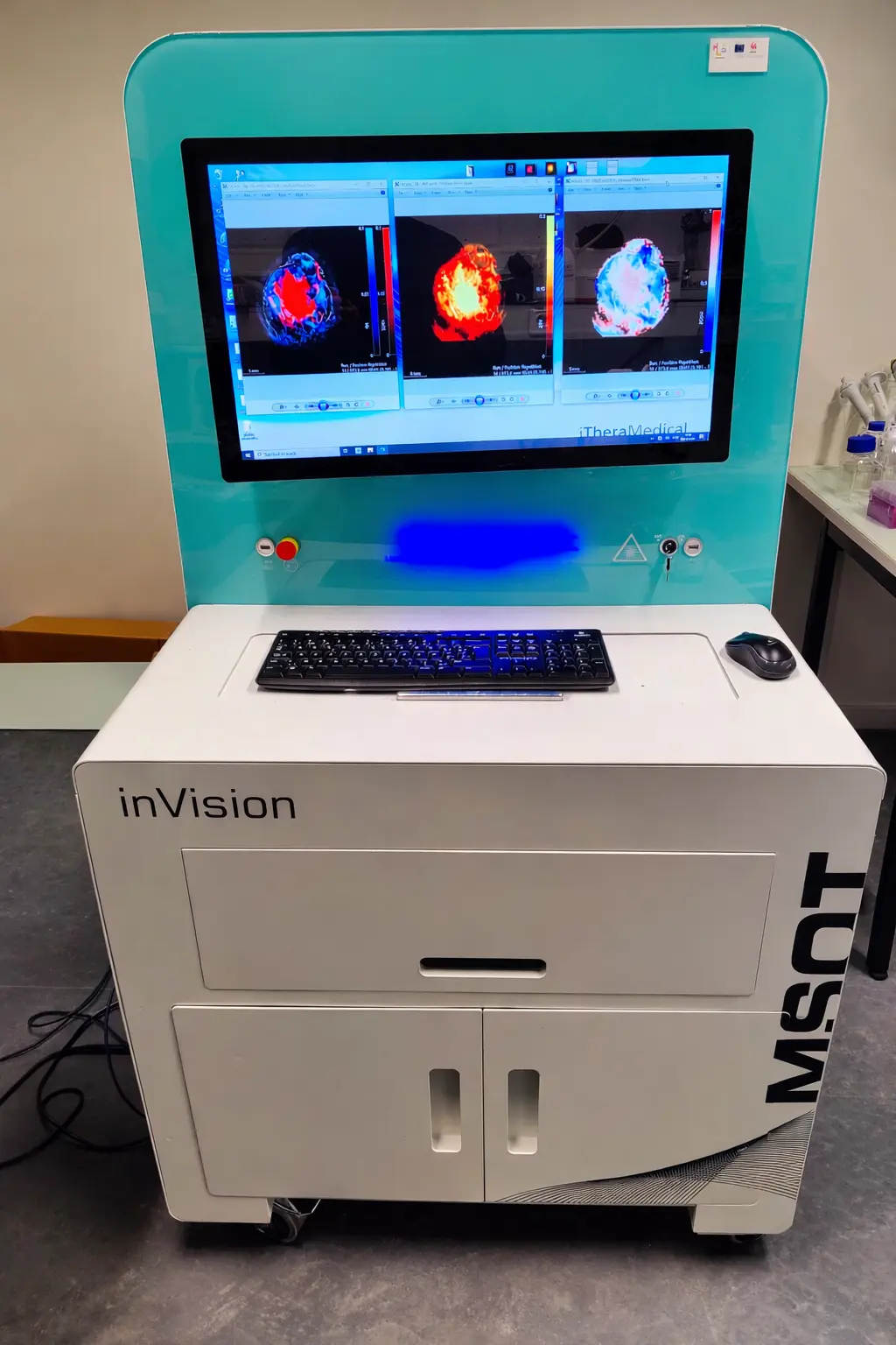 iThera Medical, inVision Echo for simultaneous optoacoustic and ultrasound tomography, equipped with internal mouse and small rat holders, and 3D Cup hand-held detector. - Optical Imaging
